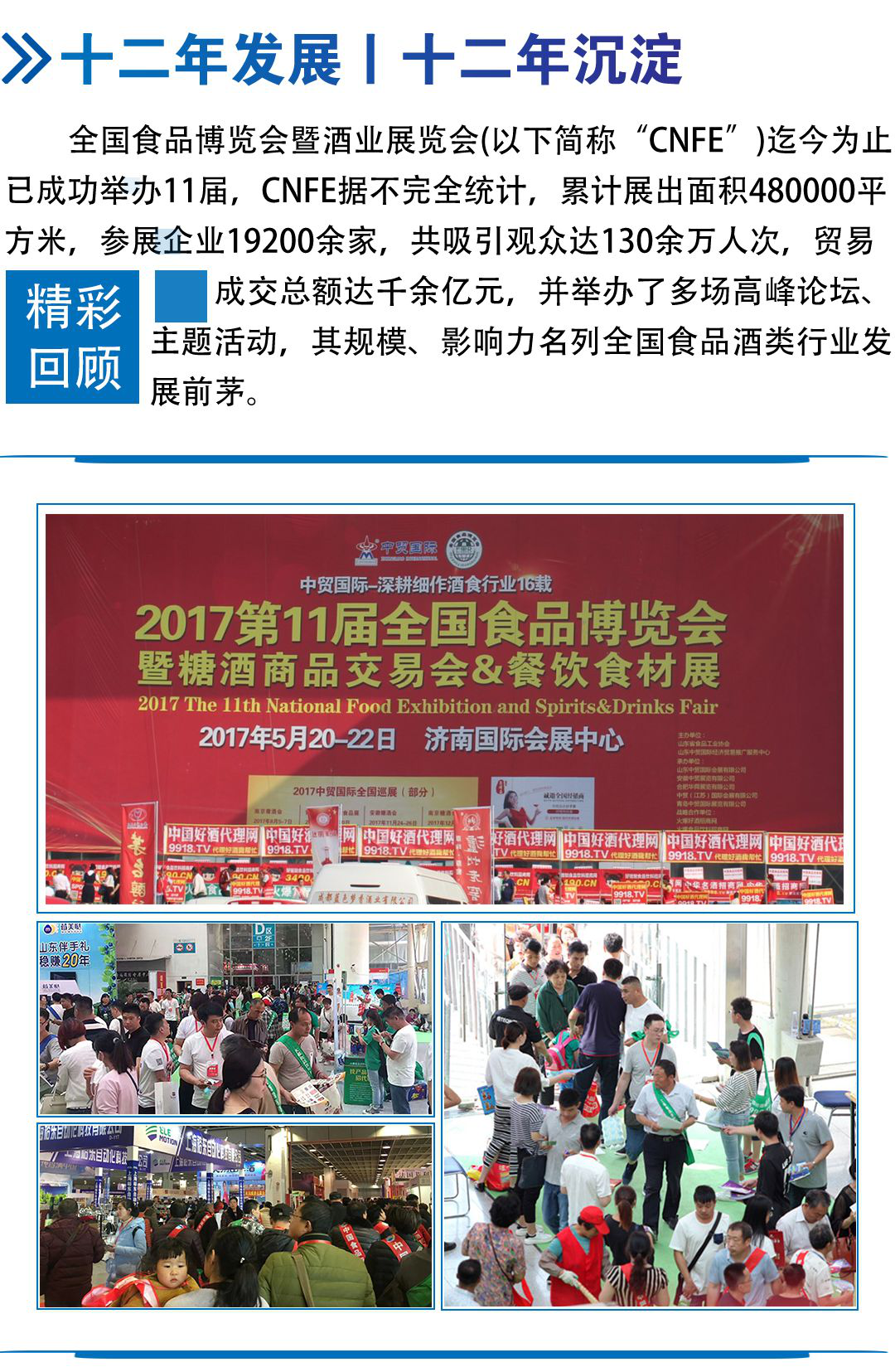 中貿(mào)集團(tuán)2018年將在山東濟(jì)南、安徽合肥、江蘇南京、黑龍江哈爾濱、浙江杭州等省市舉辦十余場(chǎng)次食品展、酒博會(huì)、餐飲展,形成聯(lián)動(dòng)招商、資源互動(dòng)和共享。