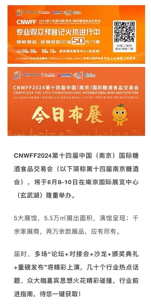 CNWFF2024第十四屆中國(guó)(南京)國(guó)際糖酒食品交易會(huì)(以下簡(jiǎn)稱第十四屆南京糖酒會(huì)),今日在南京國(guó)際展覽中心(玄武湖)開(kāi)始布展,布展時(shí)間為8月6-7日兩天。8···